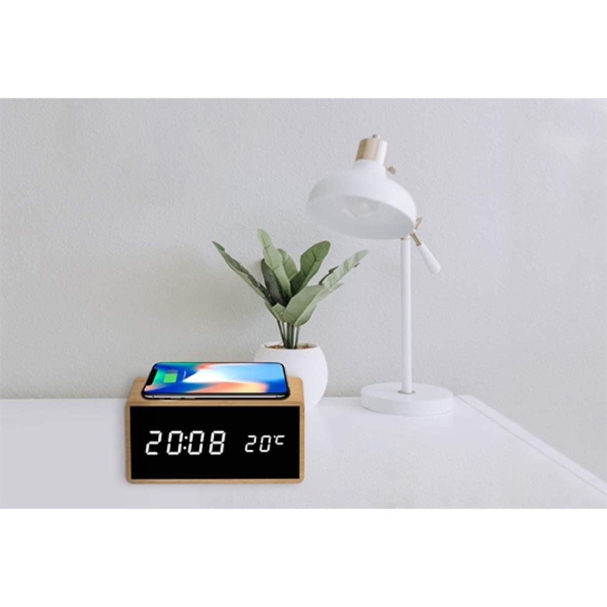 Bamboe Draadloze QI Wekker Digitale wekker – Energiezuinige verlichting met direct effect