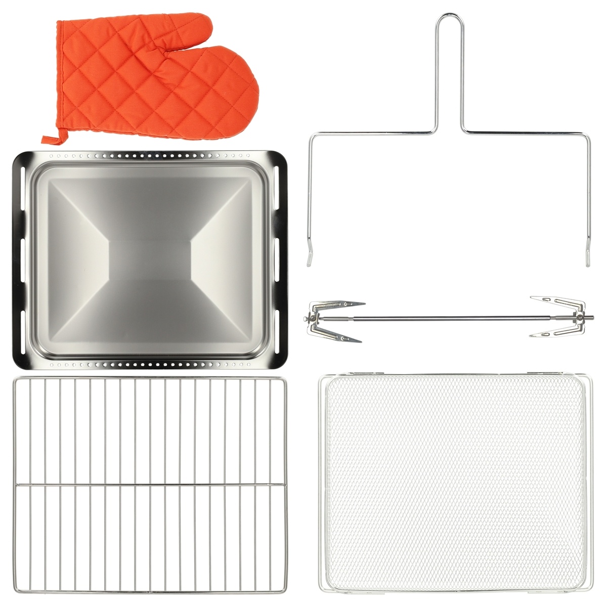 - Inclusief bakplaat, grillrek en ovenhandschoen voor direct gebruik