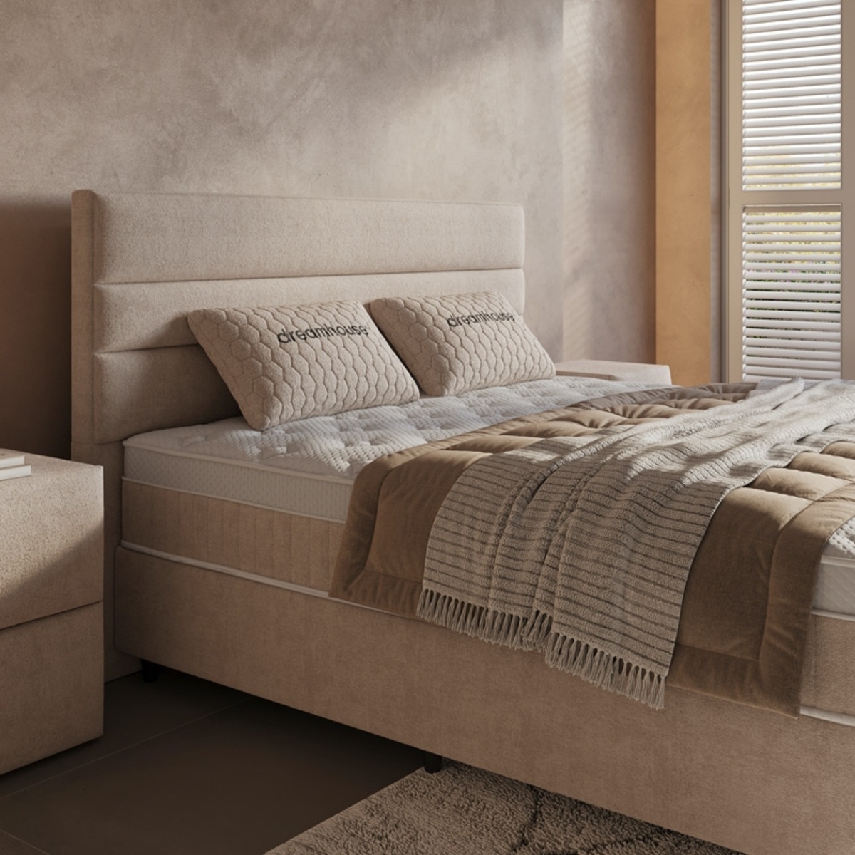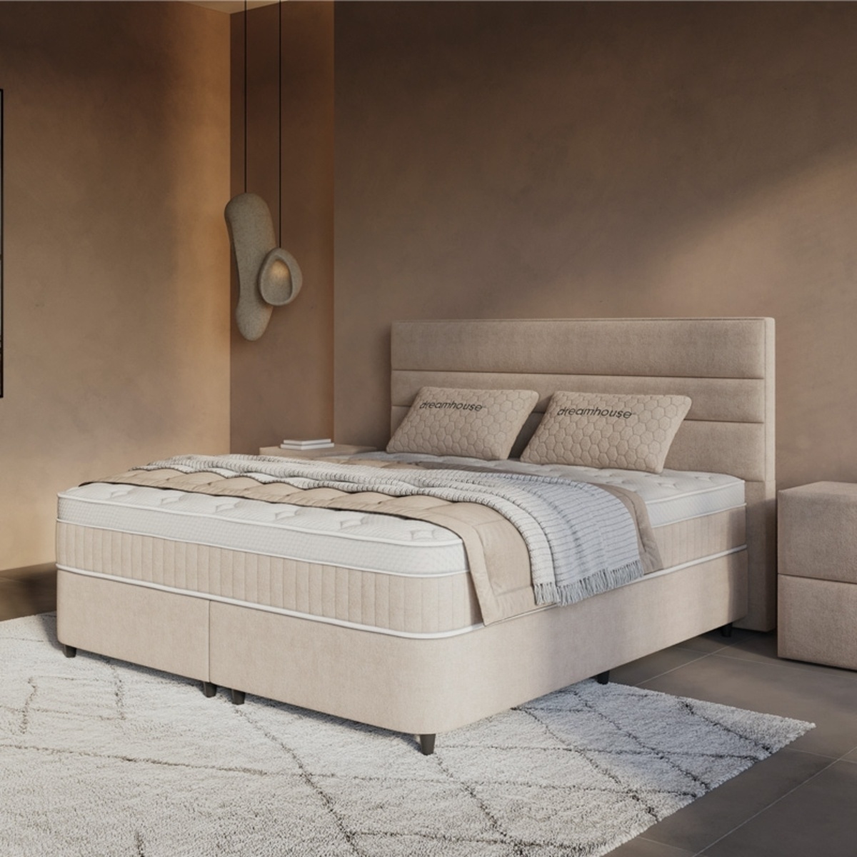 De stevige boxspringconstructie zorgt voor een gelijkmatige ondersteuning van het lichaam en draagt bij aan een comfortabel liggevoel. Dit maakt de Dreamhouse Horizon geschikt voor intensief en dagelijks gebruik, met een solide basis die langdurig meegaat.