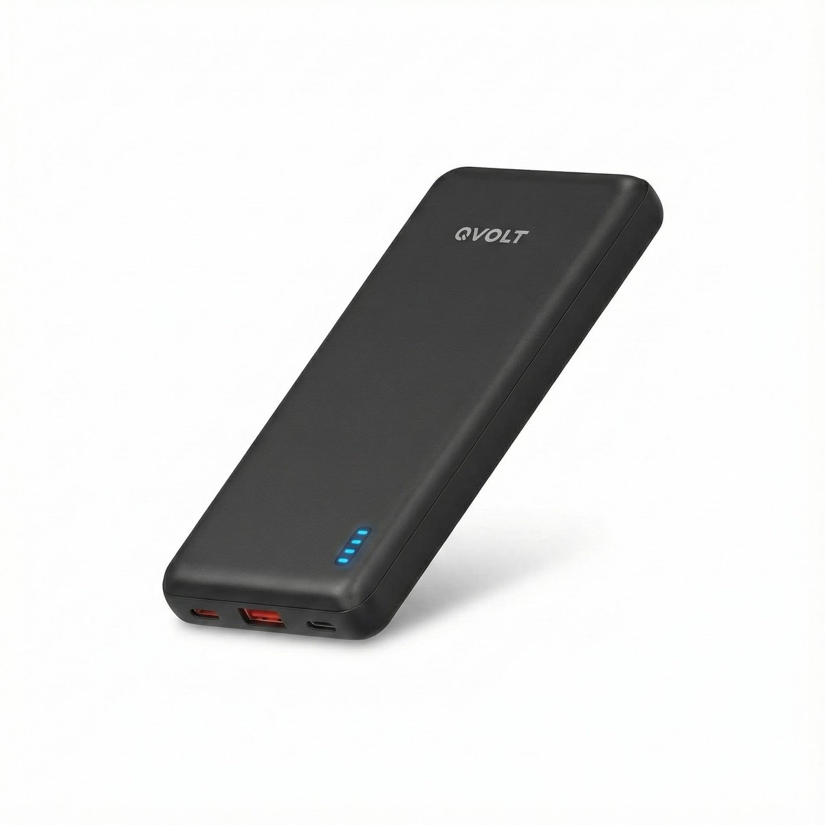 - QVOLT powerbank: 10.000 mAh, snelladen 20W, USB-A & USB-C, ingebouwde zaklamp
