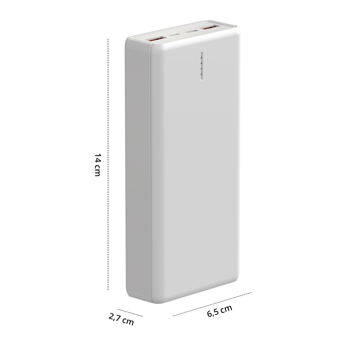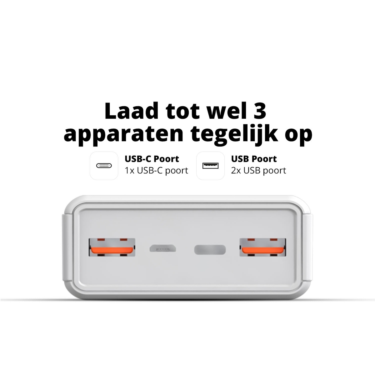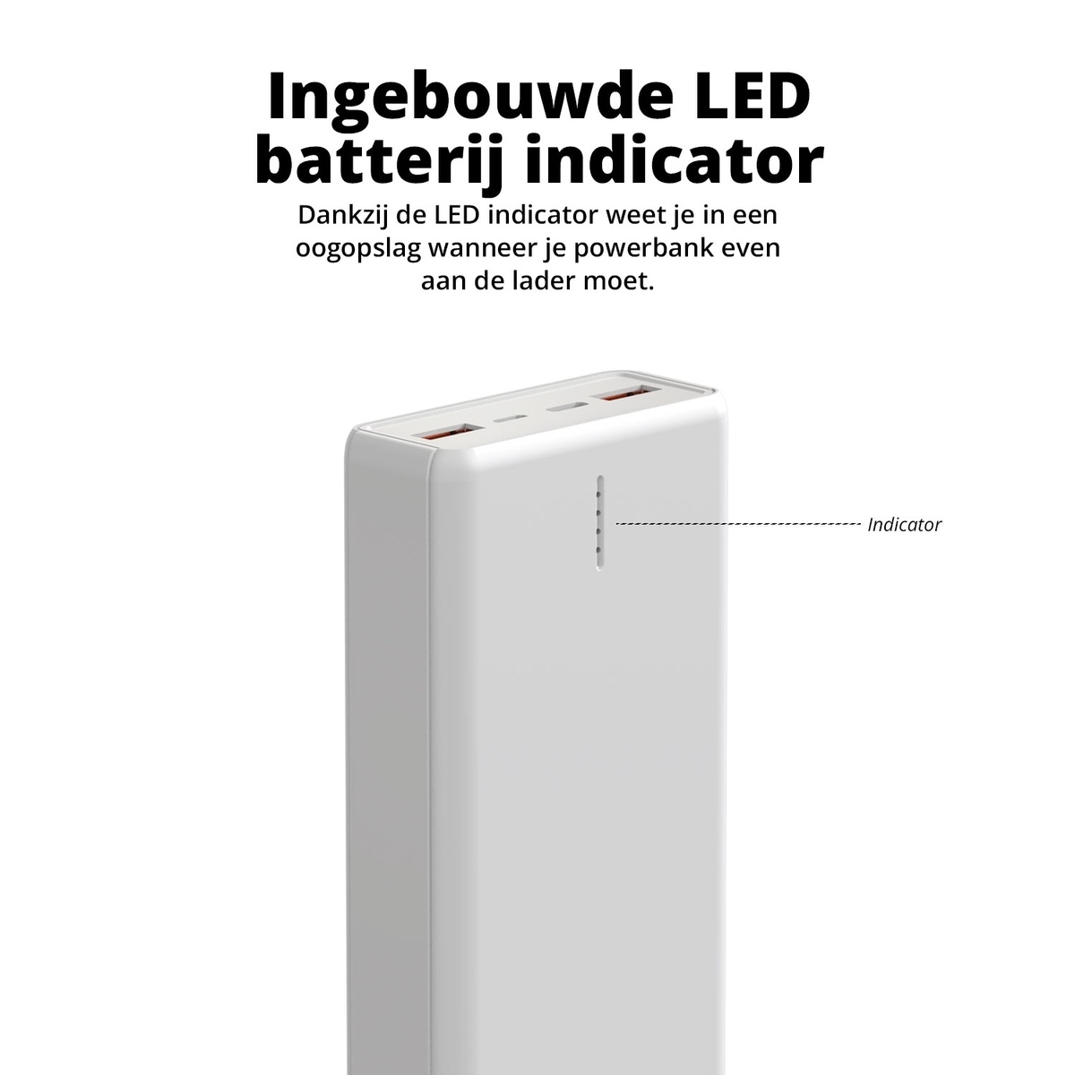- De 20.000 mAh powerbank is licht en gemakkelijk mee te nemen