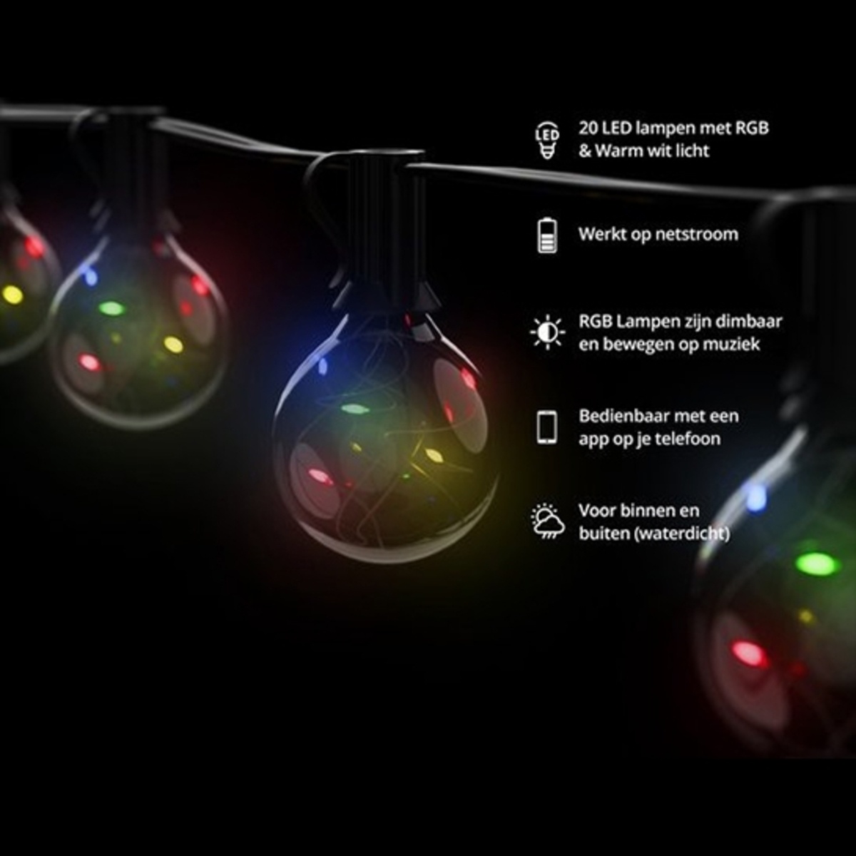 FlinQ - Slimme Lichtslinger - Lichtsnoer buiten en binnen - Smart verlichting - Lichtsnoer - 15 meter - RGB