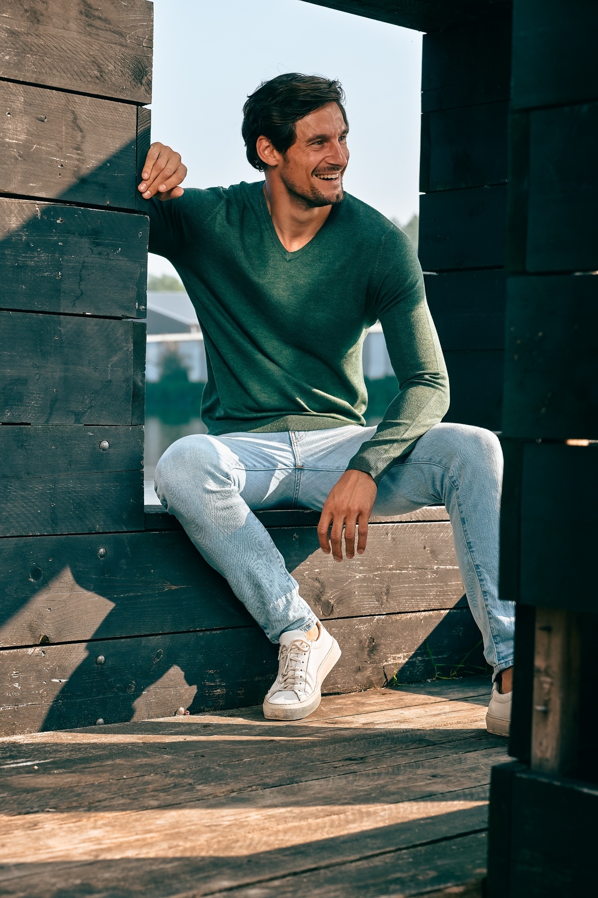 De Mario Russo Pullover Is gemakkelijk te combineren met een stijlvolle jeans of chino voor een casual look. Ook kunt je de Pullover trui over een net overhemd dragen op formele gelegenheden of gewoon op een T-shirt tijdens alledaagse bezigheden. De sweater kunt je eigenlijk overal op dragen. De truien zijn beschikbaar in wel 6 kleuren: zwart, navy, blauw, groen, beige en bordeaux.