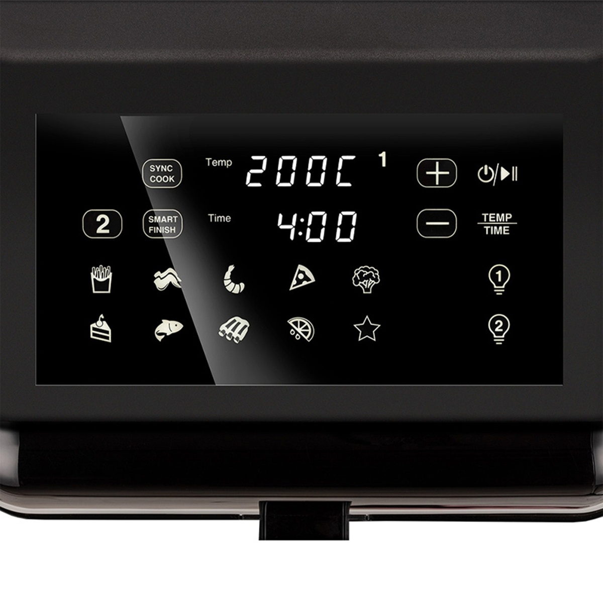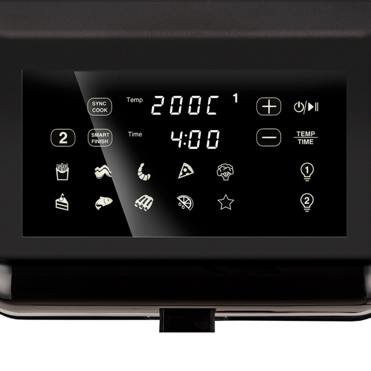 Met deze dubbele airfryer kies je voor snelheid, flexibiliteit en overzicht in de keuken. Je bereidt meerdere gerechten tegelijk, houdt volledige controle per bak en kookt met weinig olie. Een praktische oplossing voor drukke dagen en complete maaltijden, zonder gedoe.