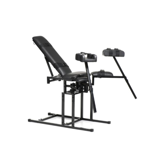 Gemaakt van duurzame en stevige materialen is deze bondagestoel perfect voor subs die houden van de meer open standjes. Ontworpen om tot 150 kg aan gewicht aan te kunnen heeft deze stoel verstelbare delen voor je benen waarmee je de hoogte en breedte kunt aanpassen, evenals een rugleuning die je partner van zittend naar horizontaal liggend kan brengen.