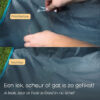 De reparatietape is niet alleen sterk, maar ook flexibel. Je kunt de tape knippen en vormen naar elke reparatiebehoefte. Je hoeft alleen maar de achterkant eraf te trekken en de tape stevig op het beschadigde gebied te drukken. De tape hecht direct en zorgt voor een water- en luchtdichte reparatie. Zo voorkom je verdere schade of lekkage.