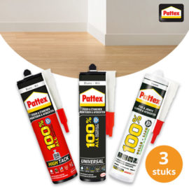 - 1x Pattex Universal Wit, 1x Crystal en 1x High Tack + kitspuit