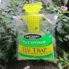 De fly trap is voorzien van aas. Zodra het water is toegevoegd zal het aas snel oplossen. Het ontwerp van de fly trap vermijdt contact van het aas en de vlieg. De vliegen komen op de geur van het aas af en vliegen in de gele deksel. Vervolgens overstroomd de deksel met water waardoor de vliegen verdrinken. Het is een wegwerp product. Daarnaast is het ook hygiënisch en milieuvriendelijk. De muggenvanger kan het best opgehangen worden in een open ruimte. De fly trap kan ruim 20.000 vliegen vangen. De muggenvanger doet al het werk, dus je hoeft nooit meer met een vliegenmepper achter de muggen aan. Met de fly trap kun je je huis weer lekker laten doorwaaien zonder last te hebben van vervelende muggen.