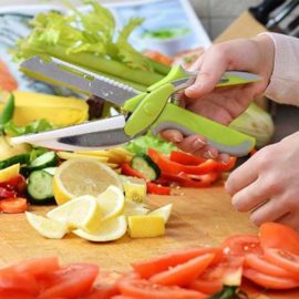 Dit is een must have voor elke keuken. De 6 in 1 smart chopper is meer dan alleen een keukenschaar! Deze keukengadget is behalve een keukenschaar ook een visschubben-schrapper, een flessenopener, een dunschiller, een notenkraker, een vleessnijder én een schroevendraaier. Je haalt de schaar gemakkelijk uit elkaar en maakt er zo een multifunctioneel mes van.