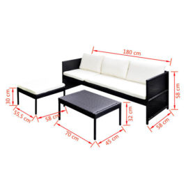 - Afmetingen driezitsbank: 180 x 58 x 58 cm (B x D x H)