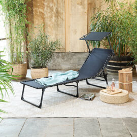 Blijf koel en beschermd tegen de felle zonnestralen met de verstelbare kap van onze loungestoel. Of je nu de voorkeur geeft aan volle schaduw of gedeeltelijk zonlicht, stel de kap eenvoudig in op de gewenste hoek voor schaduw op maat gedurende de hele dag. Nu kun je buiten loungen zonder je zorgen te maken over de felle zon in je ogen.
