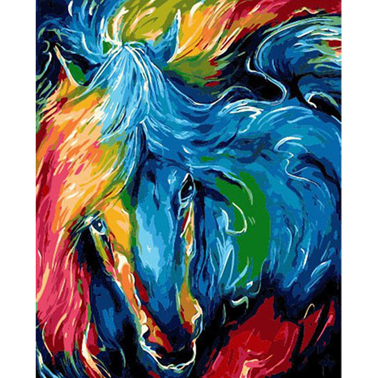 Paarden zijn edele dieren en ze zijn altijd al verbonden geweest met de mens. Vroeger werden ze vooral gebruikt als vervoersmiddel en om mee te helpen met de werkzaamheden van de boeren en tegenwoordig worden ze voornamelijk gebruikt om mee te rijden voor de hobby. Paarden zijn en waren altijd al populaire dieren en daarom hebben wij dit mooie paint by numbers doek voor volwassenen geselecteerd. Het schilderij heet abstract paard omdat er vooral fantasie kleuren worden gebruikt in plaats van de realistische kleuren. Maar dit maakt het schilderen op nummers doek wel speciaal. Goed voor urenlange ontspanning en plezier. Durf jij dit project aan?