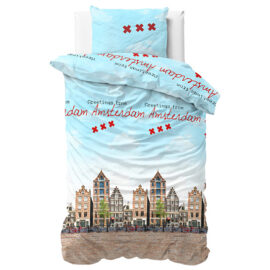 De sfeer en schoonheid van het Amsterdamse kanaal zijn goed weergegeven op dit Sleeptime Elegance Amsterdam Canal-dekbedovertrek. Ook de woorden ‘Greetings from Amsterdam’ staan afgebeeld op het overtrek. Combineer dit Sleeptime Elegance Amsterdam Canal-dekbedovertrek probleemloos met andere slaapkameraccessoires. Denk bijvoorbeeld aan een leuke sprei of sierkussens op bed, of een mooie lamp. De bedrukte kussenslopen maken het geheel compleet.