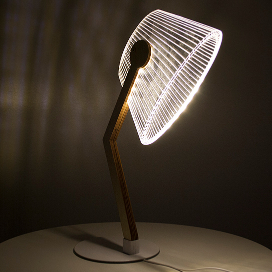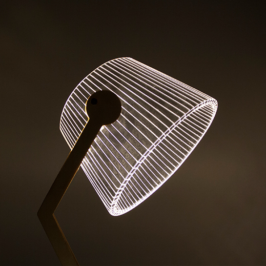 Met deze bijzondere LED lamp met 3D effect haal je een leuke maar unieke lamp in huis. Ideaal voor op je bureau of als nachtlamp bij je bed. De lamp is plat maar door het 3D effect lijkt de lamp als een gewone lamp. De lamp is gemaakt van hout en acryl en heeft een aan en uit schakelaar. De stroomvoorziening gaat via een USB aansluiting en is daardoor aan elke PC/laptop of andere USB poort aan te sluiten.