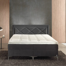 - Boxspring met onderbox, matras, topdekmatras, comfortschuim afdeklaag en hoofdbord