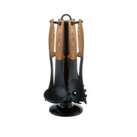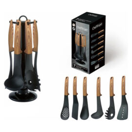 Cheffinger – 7-delige Keukengerei Set met Standaard – Houtlook