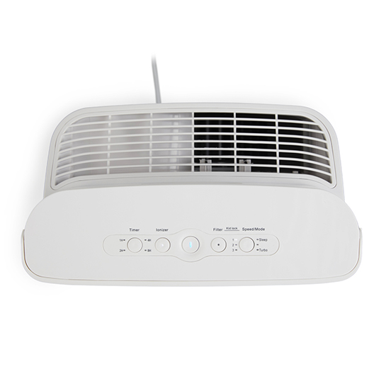 Het apparaat reinigt de lucht in jouw omgeving met 3 filters (voor-, HEPA- en koolstoffilter), ionisatie of beide. De timerfunctie kan ingesteld worden op maximaal acht uur en de uren worden weergeven door middel van de led’s naast de timer-knop.