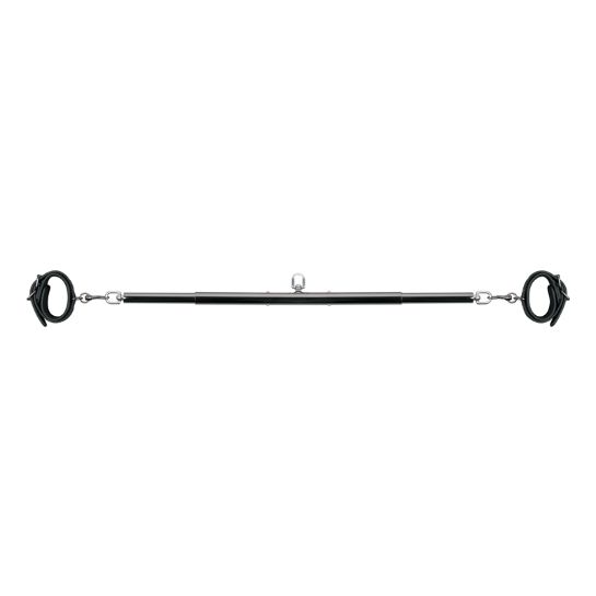 Beperk de bewegingen van je onderdaan met deze sterke metalen spreidstaaf met handboeien. De staaf kan vastgemaakt worden aan je plafond door middel van de d-ring bovenaan de staaf. De staaf zelf kan worden aangepast in lengte van 70 tot 90 centimeter. De boeien kunnen ook eenvoudig aangepast worden voor een perfecte pasvorm. De boeien zijn bevestigd aan de staaf met clipsluitingen zodat je kunt losmaken en de boeien apart kan gebruiken. Je kan ook de ring aan beide kanten gebruiken om andere bondage speeltjes te bevestigen aan de spreidstaaf, zoals enkelboeien.