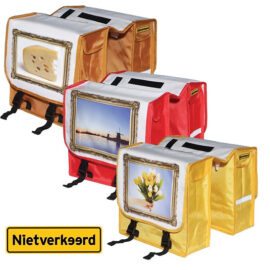 Nooit meer saaie fietstassen met de fietstassen met oerhollandse prints. Kies nu uit 3 verschillende kleuren en printjes. Met deze mooie fietstassen kun je weer lekker boodschappen doen met de fiets in plaats met de auto. Met een inhoud van 2x 11 liter heb je genoeg ruimte voor jouw spullen. Welke kleur kies jij?