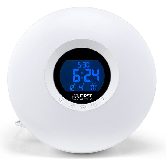 Aangenaam en geleidelijk wakker worden doe je met de First Austria 2419-1 Wake Up Light Wekker. De lichtwekker simuleert een zonsondergang in de avond en vult ās ochtends je kamer met licht als een zonsopkomst. De lichtwekker werkt ook als digitale PLL-tuner en zoekt automatisch FM radiozenders.