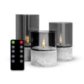 De combinatie van de stone-look basis en het smoked glass geeft de kaarsen een luxe uitstraling. De LED-kaarsen hebben een natuurgetrouwe flikkerende vlam, waardoor ze niet te onderscheiden zijn van echte kaarsen. Dit alles zonder rook, hitte of het risico van brandgevaar, waardoor ze ideaal zijn voor gezinnen met kinderen en huisdieren.