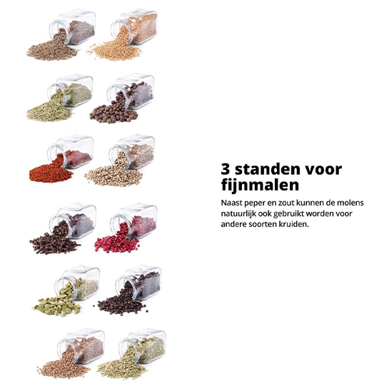 Hou je van lekker koken en eten, maar heb je geen zin om steeds te draaien aan een peper- of zoutmolen? Dan is de FlinQ Pepermolen en Zoutmolen Set Elektrisch iets voor jou. Dit is een set van twee elektrische molens, die je met ƩƩn druk op de knop kunt bedienen. Zo kun je snel en makkelijk je gerechten op smaak brengen, zonder moeite.