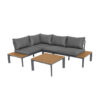 Naast dat de hoek loungeset erg lekker ligt, heeft hij door de combinatie van hout, antraciet aluminium en de grijze kussens ook een luxe uitstraling. De kussens zijn gemaakt van spun poly, dit is een stevige polyester stof met een zachte structuur. De stof is kleurecht, slijtvast en erg goed bestand tegen zonlicht. Nog een pluspunt; de hoezen van de kussens kun je wassen op 30 graden!