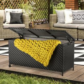 Wil je de kussens van je loungemeubel gemakkelijk en veilig opbergen? Dan is deze wicker opbergbox van het merk Intimo Garden de ideale aanvulling op jouw tuinmeubilair.