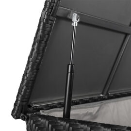 De kussenkast is voorzien van een mooie deksel met gasveren, waardoor de deksel gemakkelijk open en dicht kan Daarnaast beschikt de kist over stevig kunststof platen aan de binnenzijde om vocht tot het minimum te beperken.