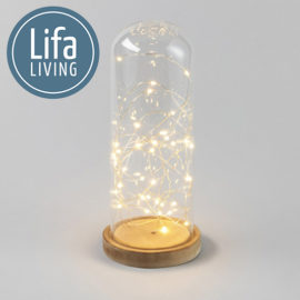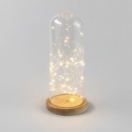Een stijlvolle stolp met LED-verlichting is nu verkrijgbaar bij Webshop-outlet.nl. Met deze mooie decoratie voor in huis of voor op je tuintafel breng je nog meer sfeer in huis of in je tuin. De stolp is gemaakt van glas en hout en heeft aan de binnenzijde LED lichtjes die werken op 3 AAA batterijen.