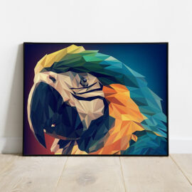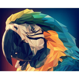 Wist je dat in het papegaaien huwelijk het vrouwtje het dominantst is? Papegaaien zijn meestal kleurrijke vogels. Er zijn vaak geen uiterlijke verschillen tussen mannetje en vrouwtje, hoewel dit bij verschillende soorten wel het geval is. De vogels zijn beroemd om het nadoen van menselijke geluiden. Wilde papegaaien doen dit overigens niet, ook al leven ze in de buurt van menselijke nederzettingen. Op dit schilderen op nummers doek zie je een gekleurde papegaai in low poly stijl. Een mooi schilderij om te schilderen, die ook geschikt is voor beginners. Goed voor urenlang ontspanning en schilderplezier!