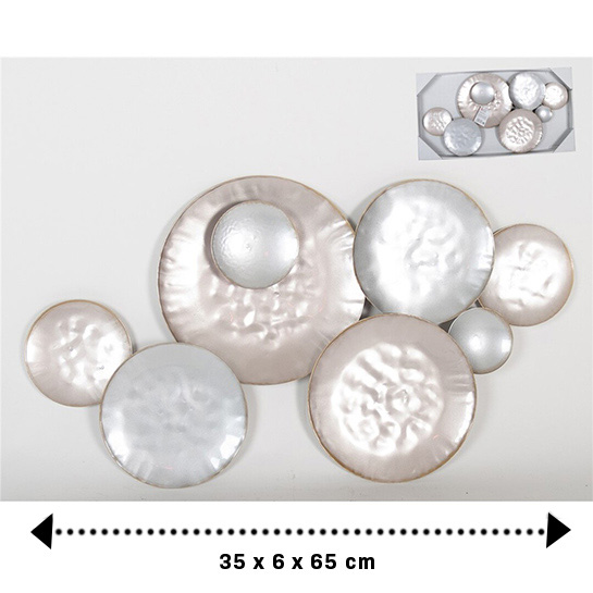 Een stukje kunst voor aan je muur, dat is mogelijk met deze bijzondere wanddecoratie. Geeft een bijzonder en origineel effect op een lichte muur en het is echt wat anders dan bijvoorbeeld een schilderij. De metalen schijfjes hebben verschillende patronen, afmetingen en tinten. Dit geeft een speelse look en brengt vooral een warme sfeer in je interieur. Je muur zal nooit meer saai of kaal zijn.