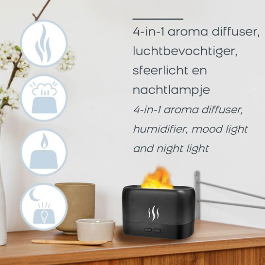 Wil je je huis voorzien van een heerlijke geur, een gezonde luchtvochtigheid en een sfeervolle verlichting? Dan is de 4-in-1 aroma diffuser, luchtbevochtiger, sfeerlicht en nachtlampje het perfecte apparaat voor jou. Dit veelzijdige apparaat combineert vier functies in één, waardoor je geniet van meer comfort en welzijn in je eigen huis.
