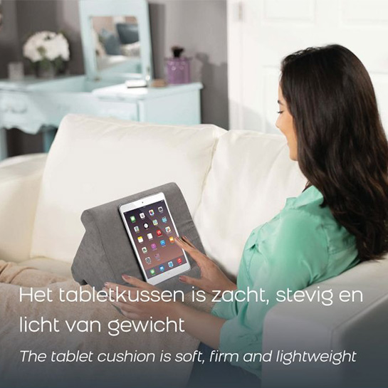 Het Orange Donkey tablet kussen is geschikt voor diverse apparaten, zoals tablets, e-readers, boeken, smartphones en meer. Met afmetingen van 29x23x26 cm is het kussen niet te groot of te klein, en de neutrale grijze kleur past perfect bij elke inrichting.
