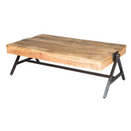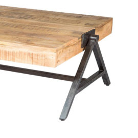 Ben je op zoek naar een praktische stijlvolle salontafel? Wij hebben nu de Orlando industriële salontafel in de aanbieding. Een opvallende detail is het gebruikte frame, en het dikke tafelblad. Het blad is gemaakt van licht mangohout en geeft je woonruimte een stoere en industriële uitstraling.