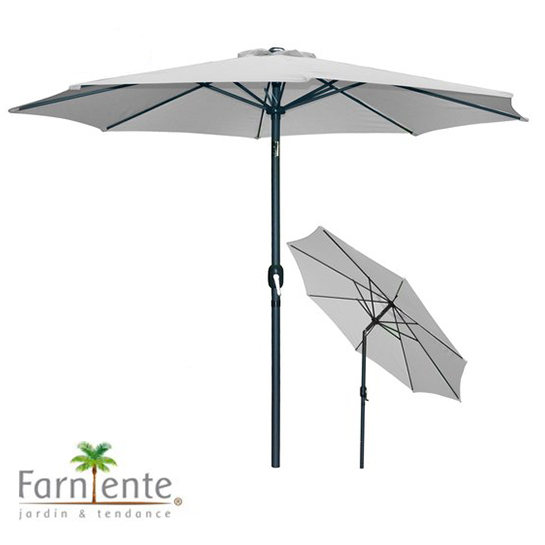 Als het warm is wil je niet vol in de zon zitten en dan is deze parasol van Farniente ideaal. De Farniente parasol creëert een fijne schaduwplek of privacy in jouw tuin of terras. Deze Push-Up parasol is makkelijk te bedienen. Deze ronde parasol in de kleur Zand/Beige of lichtgrijs met een aluminium framewerk heeft een afmeting van ø 300cm.