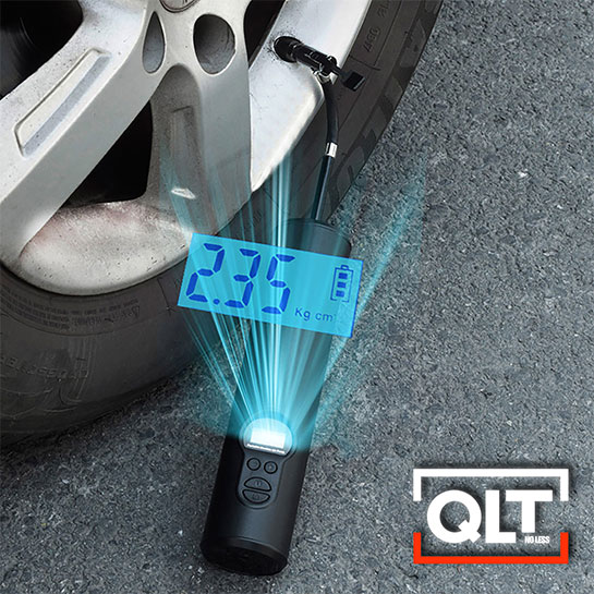 De mini compressor van QLT kan niet missen als men tegenwoordig op pad gaat!