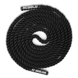De battle rope is 9 meter lang met een diameter van 38 mm en weegt 7,5 kg. Verder heeft de battle rope soft grips zodat je geen last van je handen krijgt tijdens het gebruik.