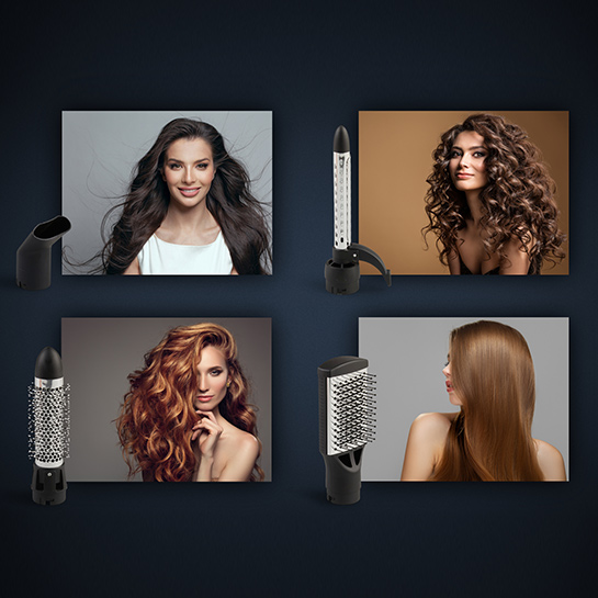 Creëer elke look die je maar wilt dankzij de vier verschillende opzetstukken waarmee je jouw haar kunt föhnen, volume kunt geven, glad kunt maken of kunt krullen. Kies een van de drie temperatuur- en snelheidsstanden voor maximale controle. Geschikt voor alle haartypes. Eenvoudig en handig in gebruik dankzij het 360° draaiende snoer.