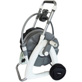 De haspelwagen is voorzien van een 20 + 2 meter lange slang en van de noodzakelijke aansluitingen. De Eurom haspelwagen is uitgerust met een stevige hendel om de slang weer snel op te rollen. Hij is eenvoudig te verplaatsen dankzij de stevige wielen en het praktische handvat.