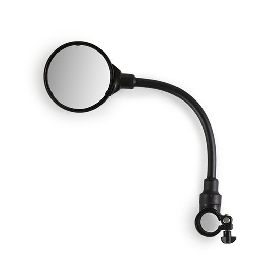Verder heeft de spiegel een flexibele arm wat het gemakkelijk maakt om de juiste hoek te vinden. De spiegel is zwart en past op elk stuur met een diameter tussen 22 en 32 mm.