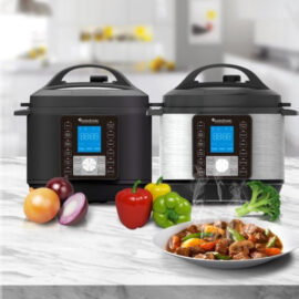 De elektrische snelkookpan is digitaal en voorzien van een lcd-scherm met een centrale knop, die precisie biedt bij de menuselectie en drukaanpassing. Alle programma’s zijn afzonderlijk van elkaar aangeduid en in te stellen met één klik. Van het lcd-scherm lees je gemakkelijk de kookstatus.