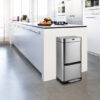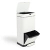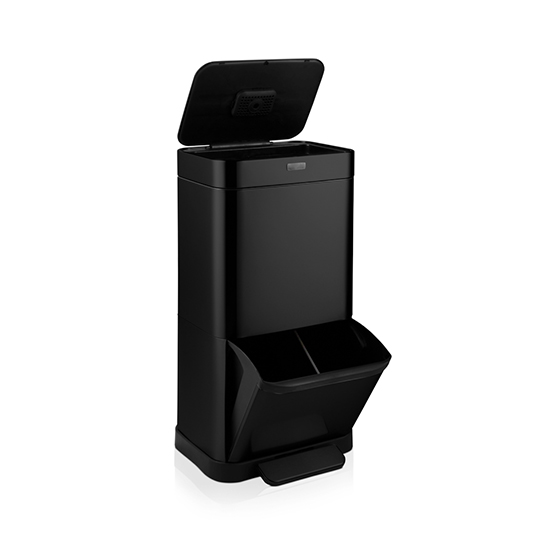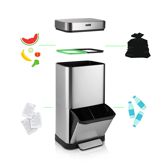 Daarnaast is dit ook een oplossing die bijdraagt aan huishoudelijk gemak. Onderin vind je 2 losse compartimenten die door het te verplaatsen scheidingswandje, zijn in te delen naar wens. Over de breedte bovenin vind je een grote emmer, die opgedeeld is in 2 delen. Hierdoor kun je super eenvoudig plastic, papier, bio en huisafval scheiden. Ook heb je bij het afruimen van de tafel geen vrije hand meer nodig om de deksel te openen voordat je je spullen weggooit.
