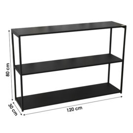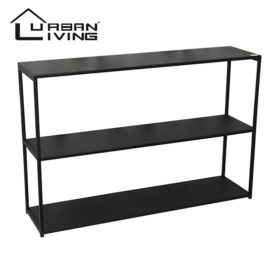 De Urban Living metalen boekenkast kun je gebruiken zoals de naam al zegt als boekenkast. Maar ook te gebruiken om jouw mooiste accessoires of andere mooie spullen tentoon te stellen. De kast is uitgevoerd in de kleur zwart en heeft een afmeting van 120 x 30 x 80 cm. Door zijn strakke look past de kast in elke interieur stijl. Op de drie planken heb je genoeg ruimte voor al jouw spullen.