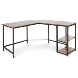 Of je nu thuis of op kantoor werkt, een videogame speelt of gewoon op internet surft op zoek naar geweldige recepten – met een goed ontworpen kantoortafel ben je veel productiever. Met deze stijlvolle computerbureau creëer je een industriële stijl in huis of kantoor. Onze bureau heeft de afmetingen 138 x 138 x 76 cm, weegt slechts 22 kg en is gemaakt van stevig en onderhoudsvriendelijk MDF en ijzeren frame. Een praktische L-vormige hoektafel met twee grote werkbladen en twee zijplanken. De kabeldoorvoer in de hoek is een elegante oplossing om alle kabels van jouw computerapparatuur te ordenen en weg te werken.