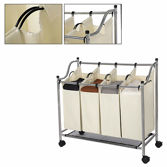 Met deze slimme wasmand kan je het wasgoed sorteren op kleur of materiaal. Deze was organiser is voorzien van vier waszakken met 35 liter inhoud, zodat je witte sokken niet per ongeluk in roze kunt veranderen. Daarnaast is de wasmand ook nog eens mobiel en hoef je dus niet meer te sjouwen met de was.