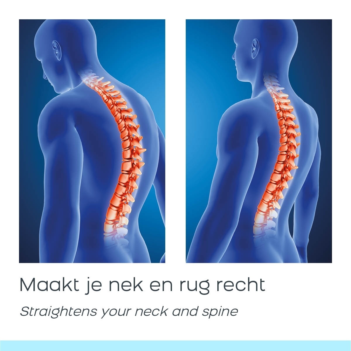 - Helpt bij het verminderen van rug-, nek- en schouderklachten
