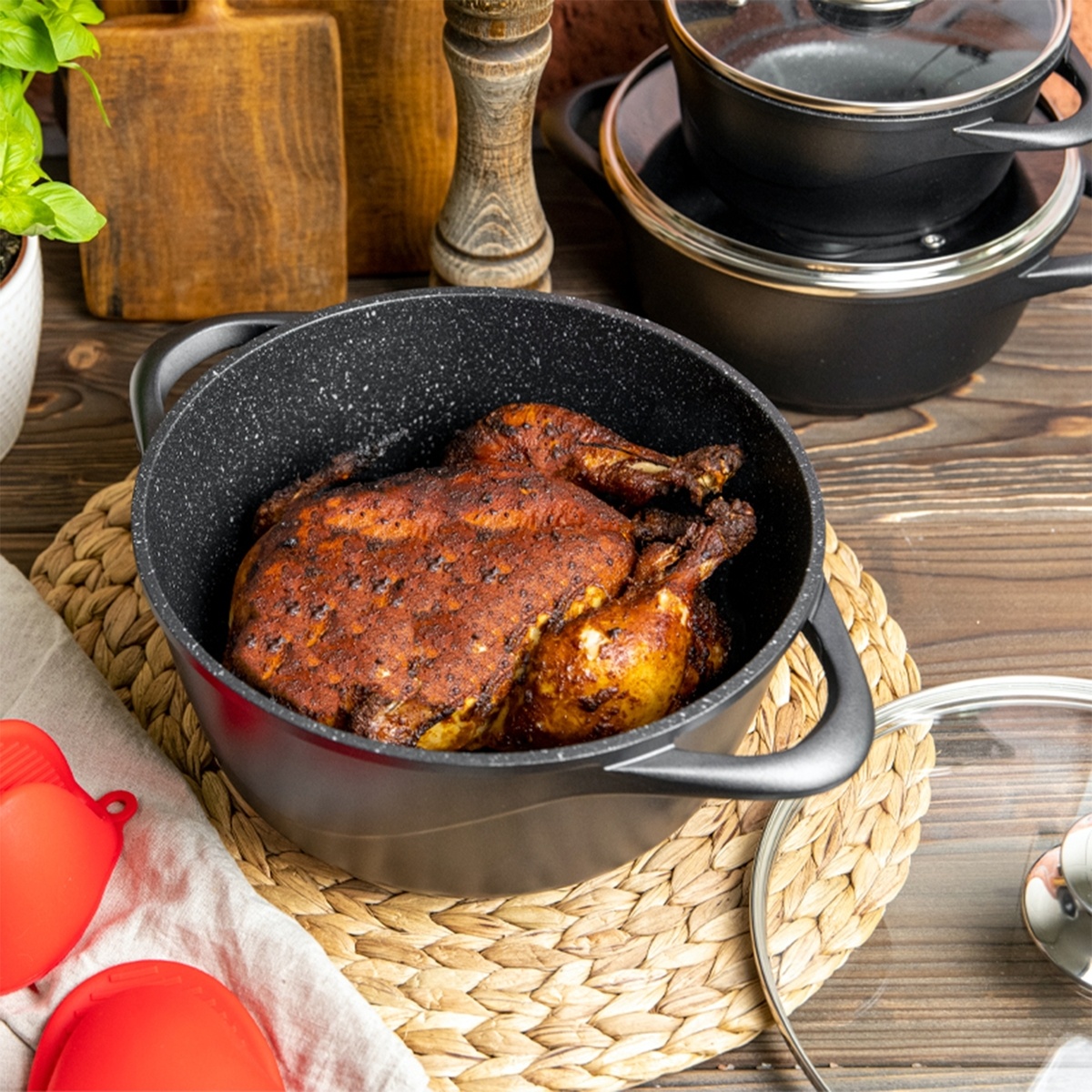 Met meerdere pannen en bijpassende deksels heb je altijd een passend formaat bij de hand. De set is geschikt voor kleine en grotere gerechten, soepen, stoofschotels en dagelijkse maaltijden. Een praktische keuze voor gezinnen, starters en iedereen die graag overzichtelijk kookt.